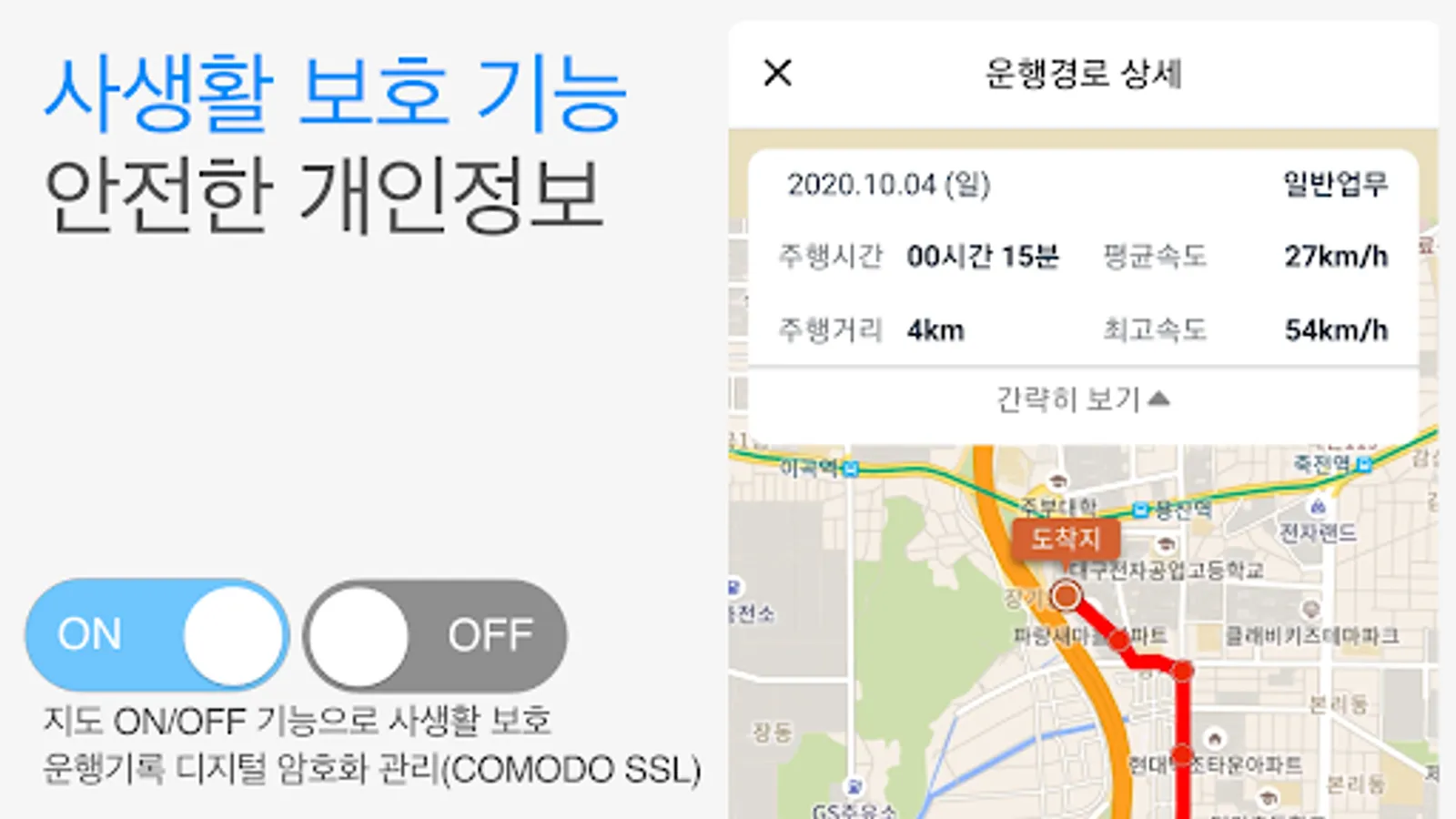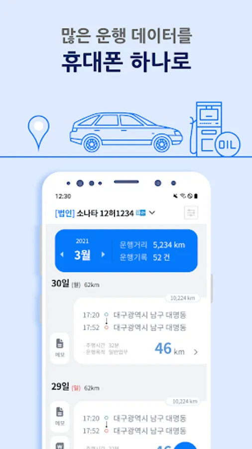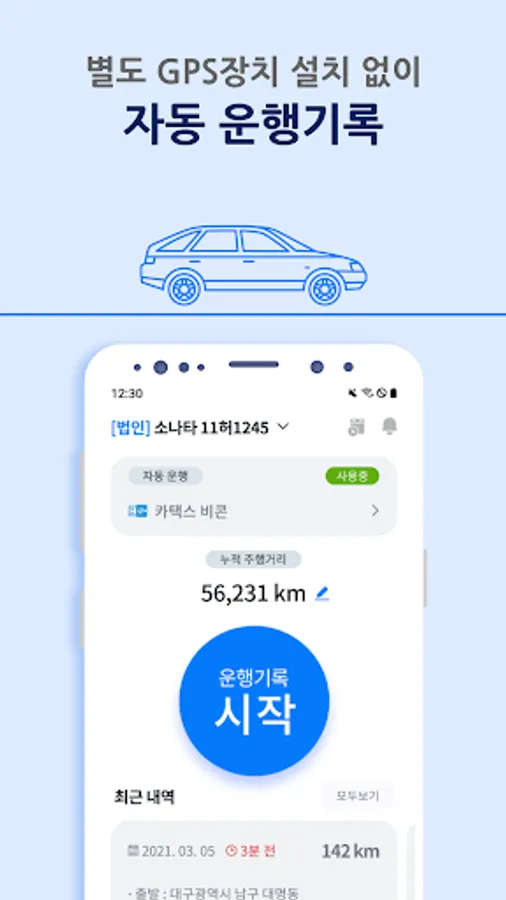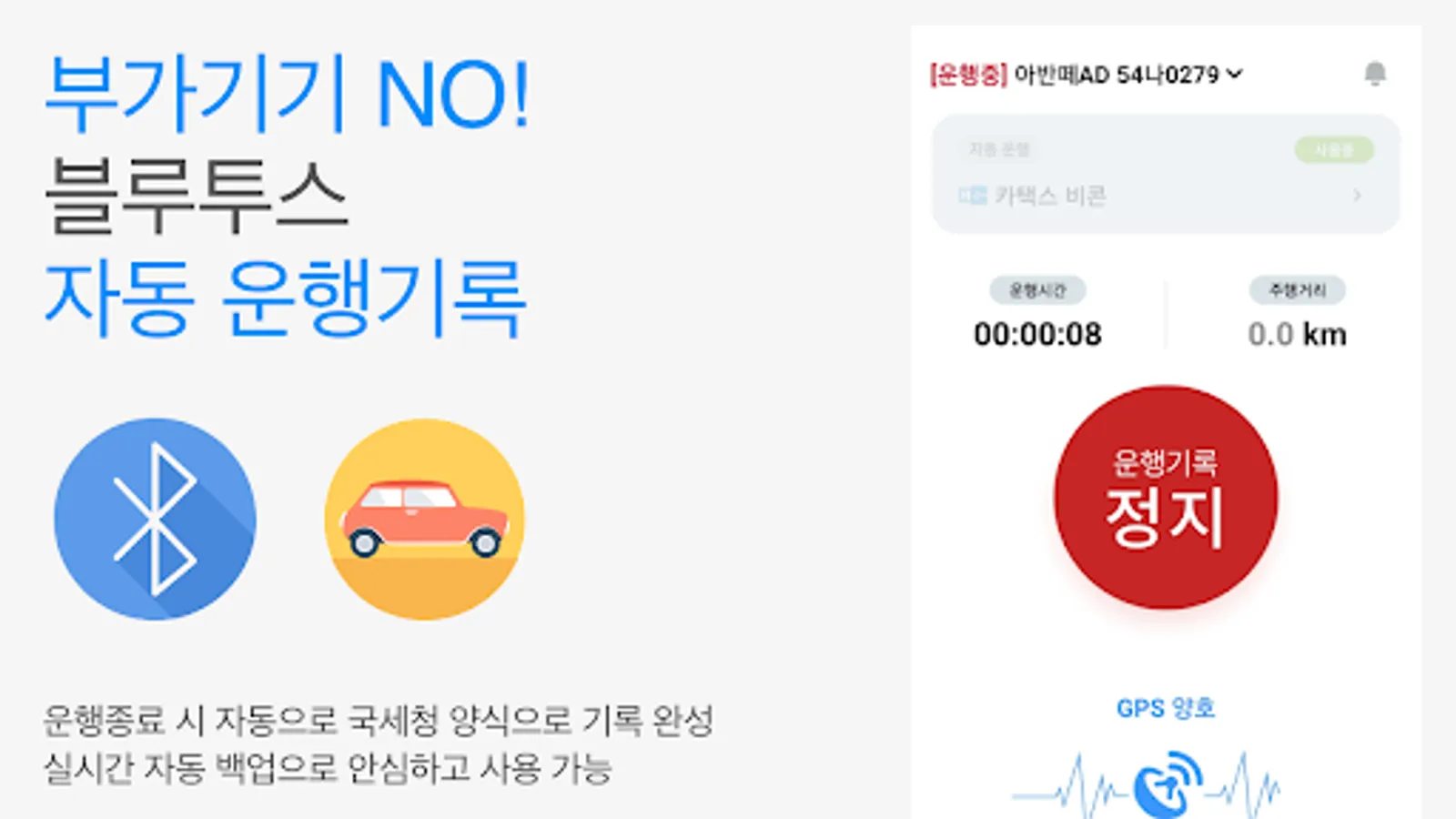 -Record detailed driving history required in the vehicle driving log only with a smartphone app