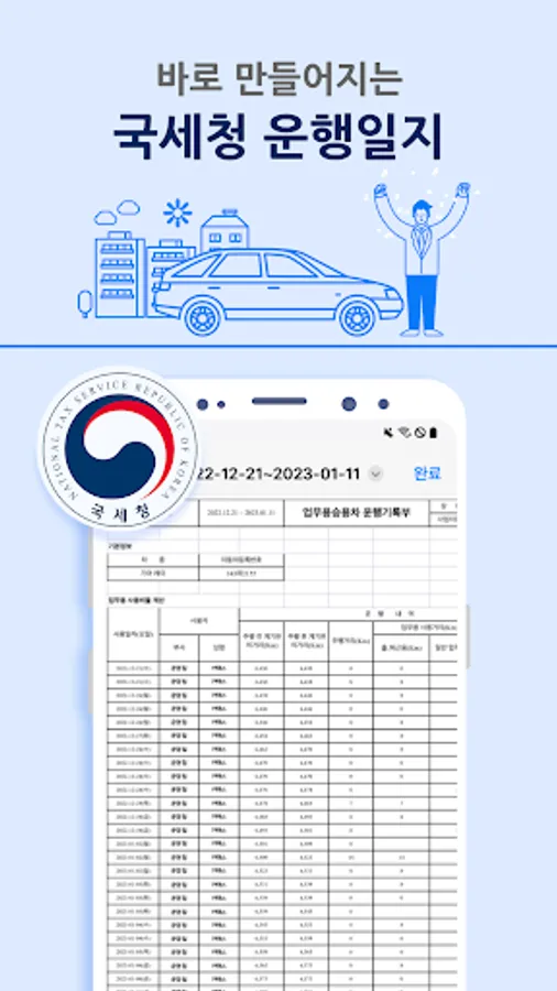 - Corporate vehicle operation log: Create a driving log in the form of business passenger car operation record notified by the National Tax Service