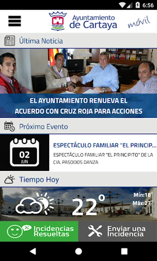 INCIDENCIAS: Ahora con la app móvil municipal puedes informar a tu Ayuntamiento, a través del móvil, de cualquier incidencia que detectes en la vía pública, enviando incluso una imagen de la misma. El Ayuntamiento recibirá en el acto tu comunicación y te responderá informando sobre la tramitación de la incidencia comunicada.