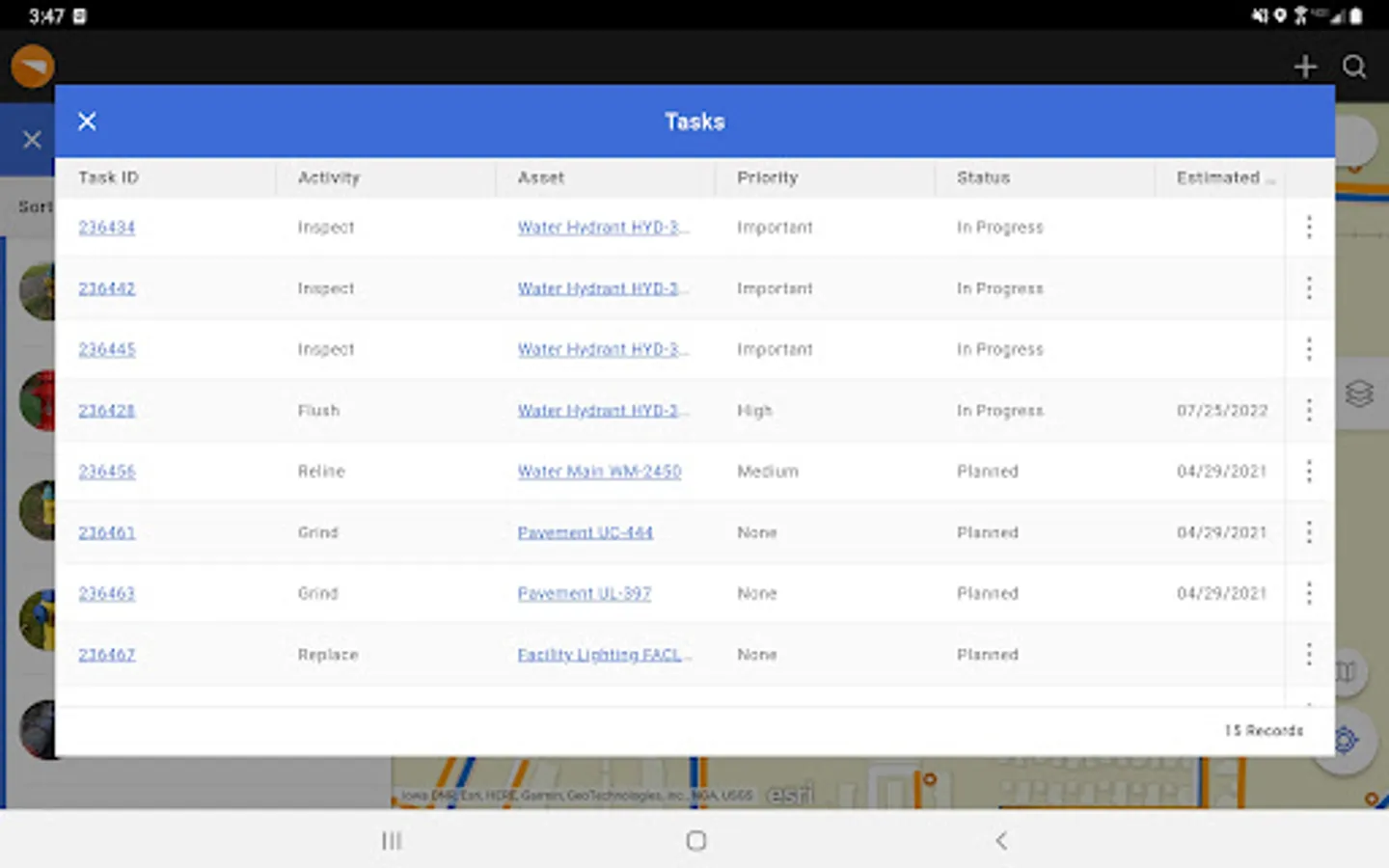 • Create tasks to inspect, repair, or maintain your infrastructure assets