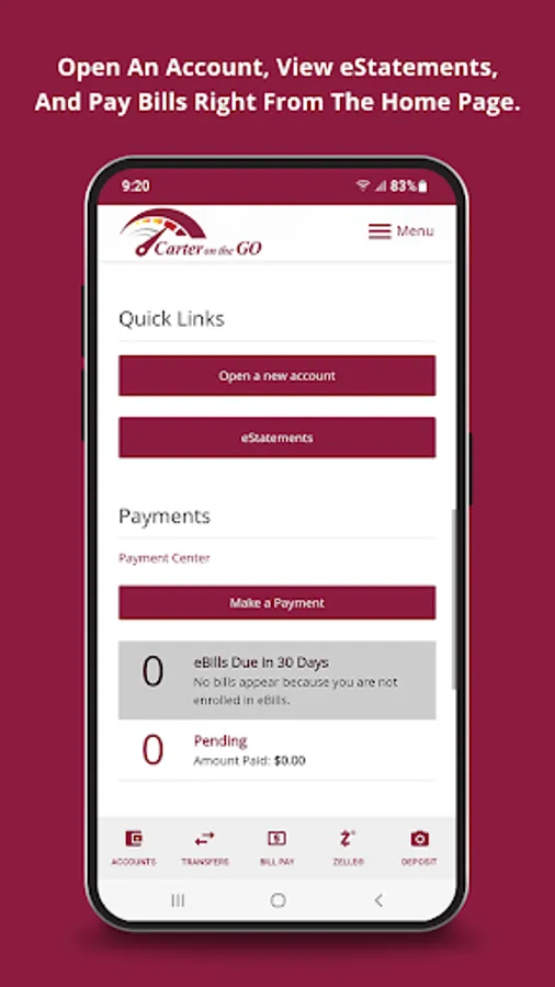 • Go to CarterBankandTrust.com/CarterOnTheGo for how to videos and answers to frequently asked questions