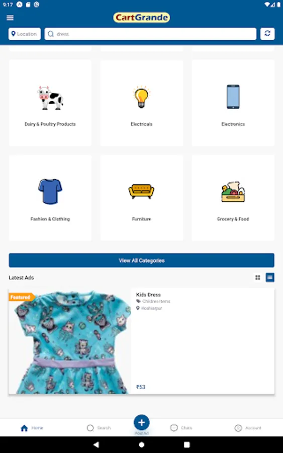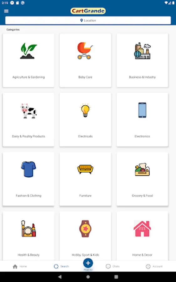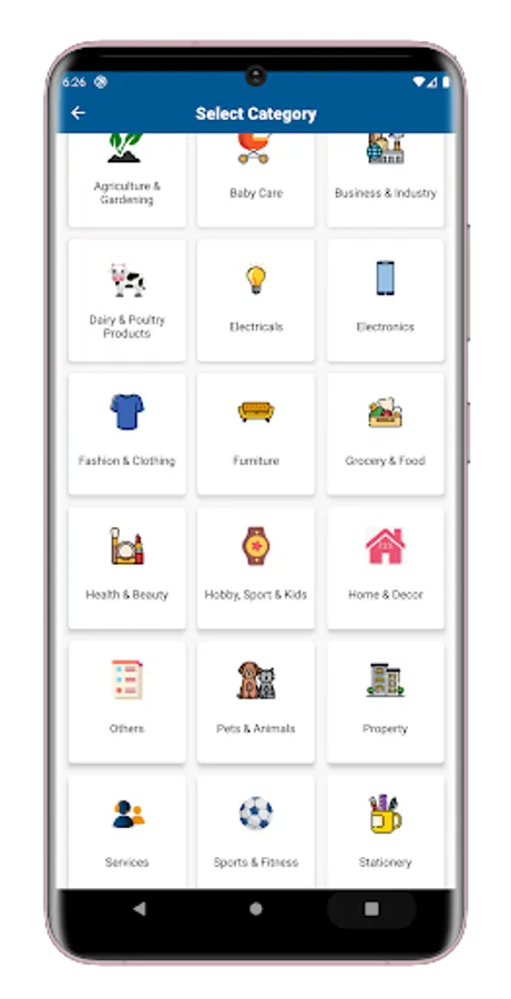 Sellers can sell from a Single item to Wholesale items related to Agriculture, Baby care, Dairy products, Grocery, Clothing, Artwork, Toys or Machinery, Sports, Furniture, and a lot more in around 100+ categories. Explore more by downloading the App at no cost.