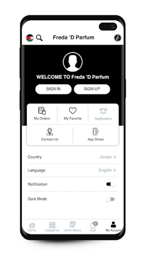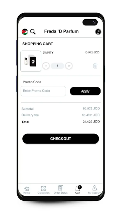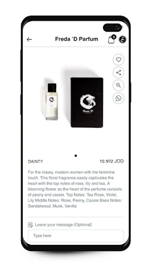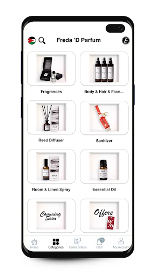 Freda ’D Parfum application is you gate to buy your favorite perfumes. To order from the app: open the application, then click on the wanted category, add what you want to your cart. Finish the process by filling the wanted information to get your order.