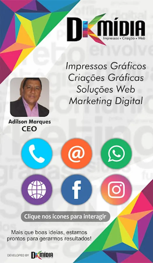DK Media Digital Interactive Business Card - Digital Agency contains contact information, website and social networks.