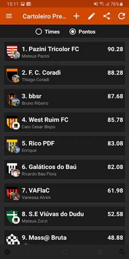 IMPORTANT: Cartoleiro Premier is an UNOFFICIAL application of Fantasy Game Cartola FC, and has no connection with it.