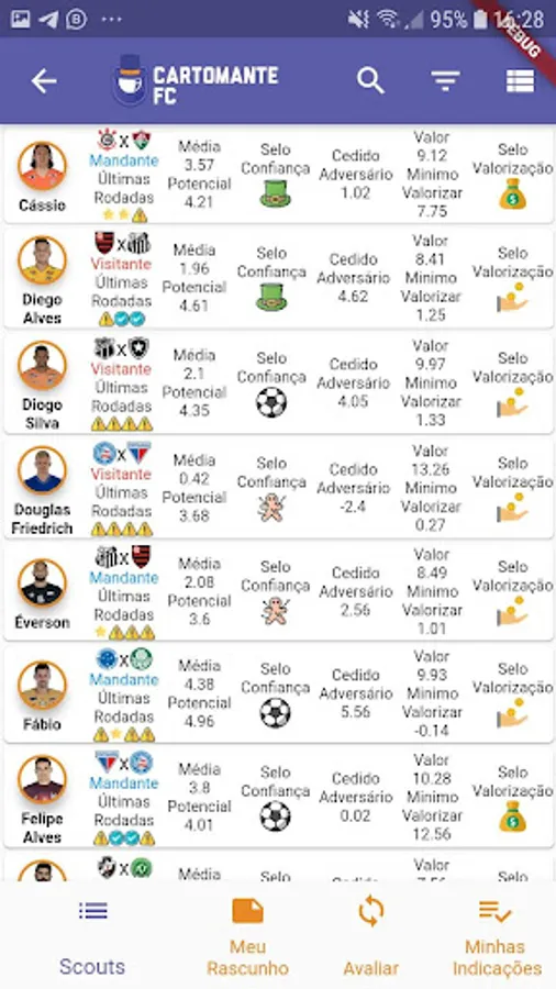 CartomanteFC is the application for you to enter the field more intelligently when playing Cartola, Cartola Express, Rei do Pitaco or Catimba.
