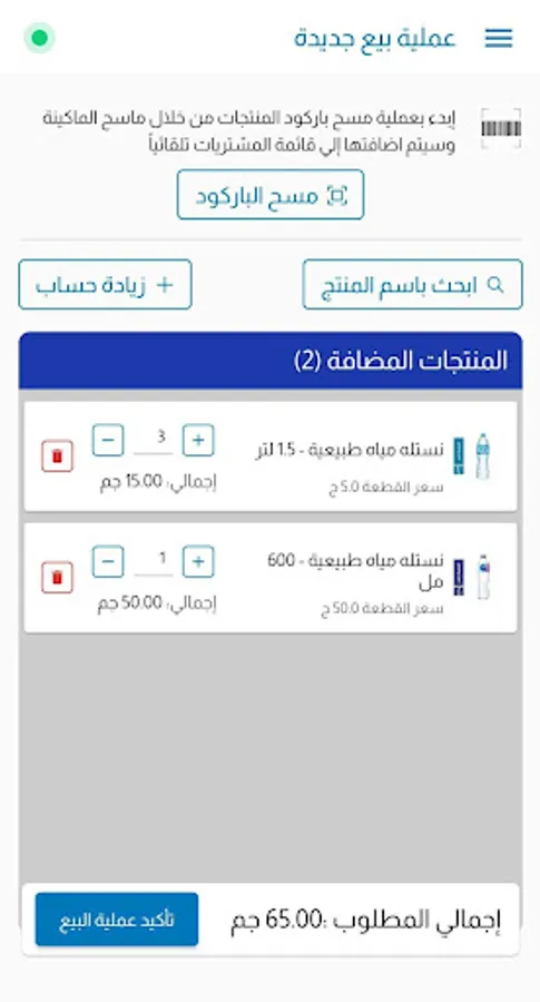 The Carton Cashier application from the Cartona Company provides you with an easy and effective way to manage your inventory and sales operations. You can easily add your items and inventory and manage them effectively using the Carton Cashier application. You can also create orders and issue invoices quickly and easily, with the ability to scan barcodes using the camera to facilitate the process. You can also monitor profits and best-selling product reports to help you improve your store's performance using the Carton Cashier app from Cartona. Thanks to its simple and easy to use user interface, anyone can use the Carton Cashier app with ease. Don't hesitate to try the Cartona Cashier app from Cartona and improve your store operations today!