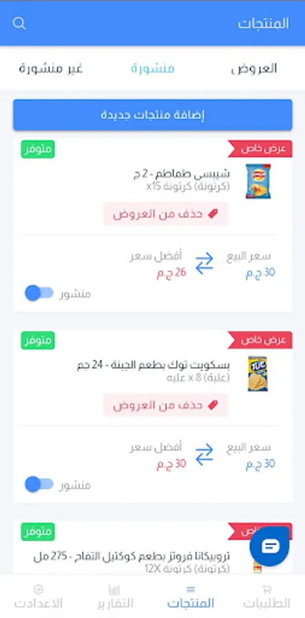 يسمح تطبيق كرتونة للموردين إدارة الطلبيات بكل سهولة وكذلك تعديل أسعار المنتجات والمخزون وعرض التقارير المختلفة.