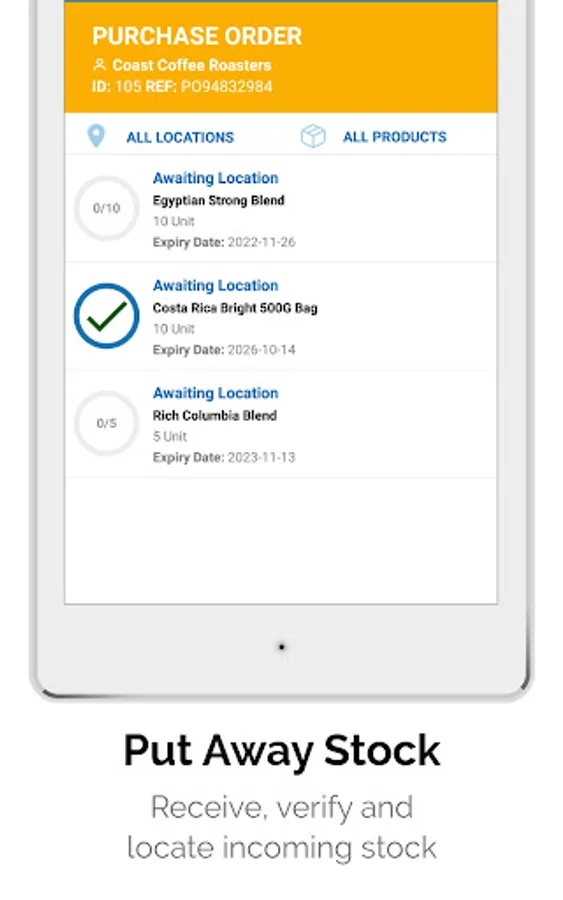 • Receive/ verify/ allocate purchase orders through mobile app