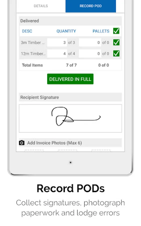 • Attach photos of invoices and delivery details to ePODs