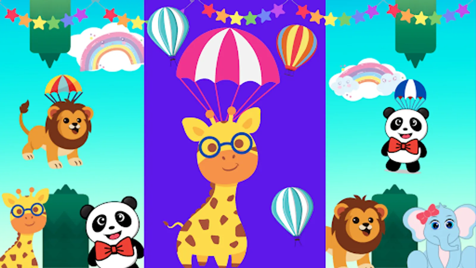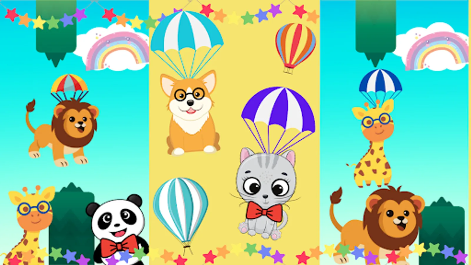 Beware by tapping more It'll make your Animal, pets, Dogs, cats, Lion, giraffe, elephant, panda cartoons characters go higher, you'll need to be a pro to control in Animal Pets Fly Dogs cats Adventure Kids cartoon puzzle game.