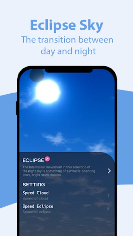 - Change the sky according to personal preferences: night sky, cloudy sky, eclipse phenomenon