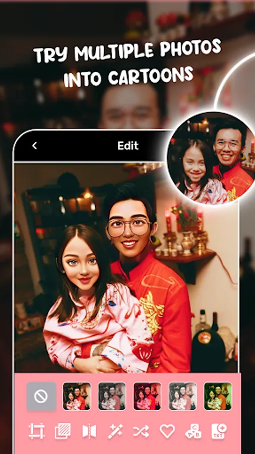 Embrace your inner artist with our state-of-the-art cartoonizer tool! Transform any photo into a beautiful cartoon with just a few taps. The advanced algorithms of cartoon face - toonapp cartoon photo editor app ensure that your cartoonified photos look vibrant and professionally crafted.