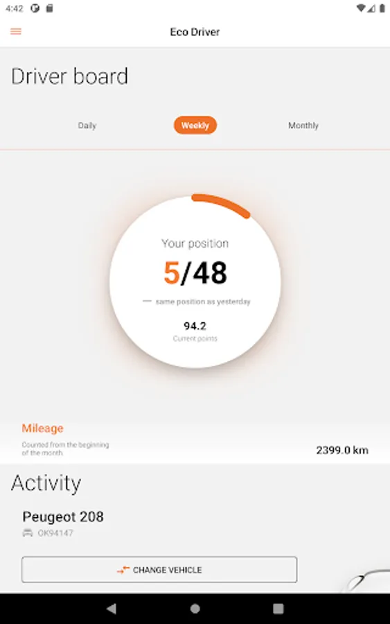 Safety and eco scoring: understand how they can improve their driving behaviour to improve their road safety and reduce their eco impact. Drivers will see their events for speeding, harsh braking, harsh accelerating, harsh cornering and idling so that they know what behaviour they need to focus on changing. Teams can also compete by seeing their overall ranking for safety and eco-efficiency against their peers. "