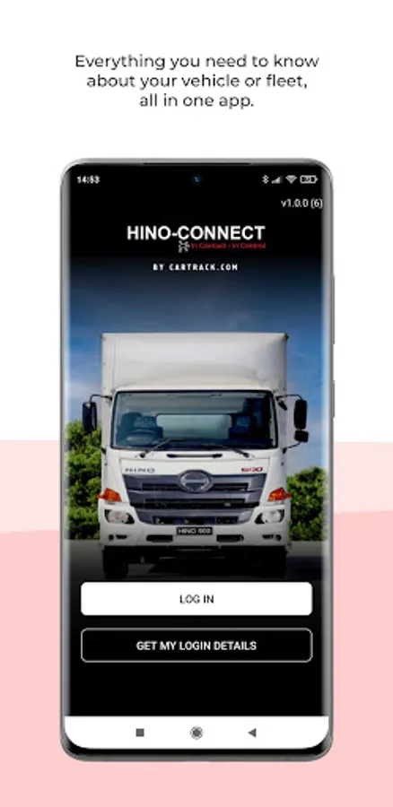 The HINO-CONNECT app is brought to you by HINO, in partnership with Cartrack, to keep you in contact with your HINO vehicle at any time, all at the touch of a button.