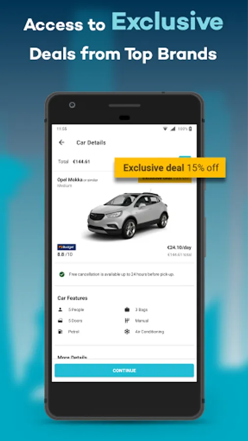 - Exclusive deals and discounts from top car rental brands only available in our app.
