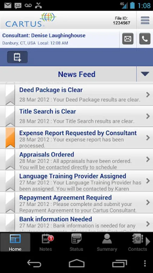 The Cartus Mobile App gives Cartus clients and their transferring employees quick access to relocation information. Check move status, view key events through the News Feed, add relocation contacts directly from our app to your phone, file expense reports and more. It’s fast, free and secure. Use your current CartusOnline login information to start using the app today.