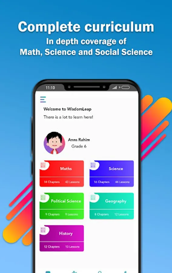 The Wisdomleap learning program is designed keeping only one outcome in mind- and that is learning absorption of the students. The app is designed to enhance learnability, enhance interest and aptitude for the subject and to inculcate original thinking via its thoughtfully designed lessons , games & tests.