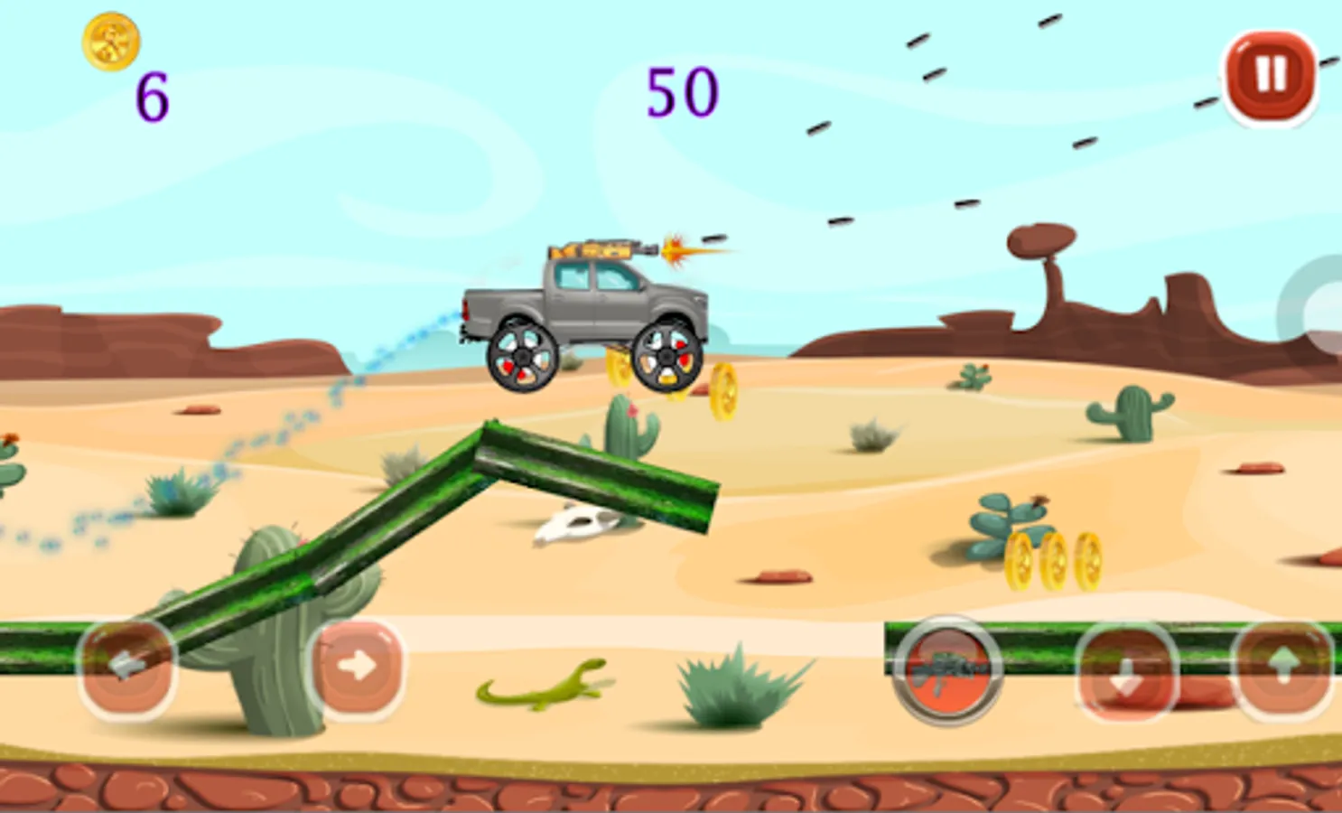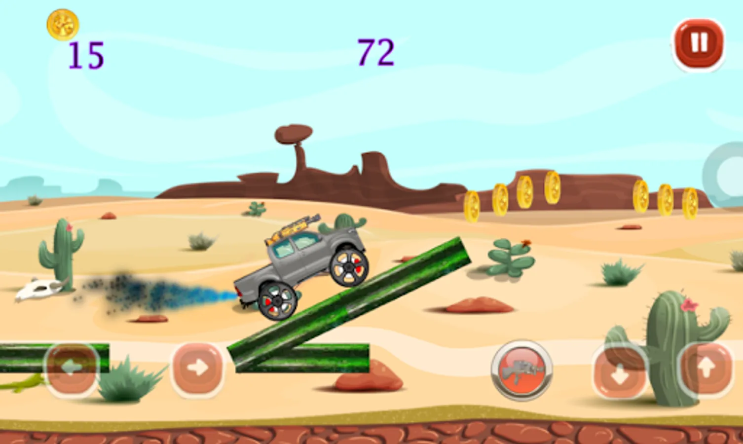 You are about to take part in a journey where no driver has ever dared to venture, Be smart and clever to collect bonuses and collect coins to improve your car and reach even greater distances high avoiding all zombies on your way which is full of hill and bombs.