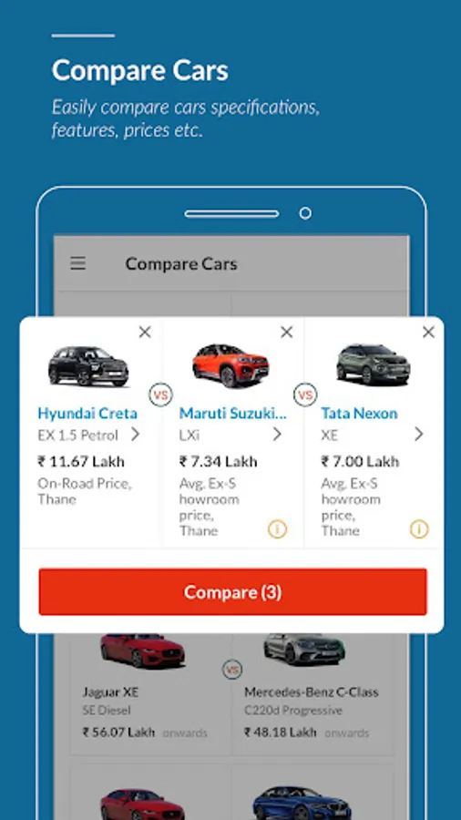 • Compare Cars - Best car comparison app for comparing prices, features, specifications and colours