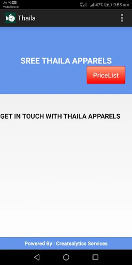 Thaila product details application, which gives latest pricelist, also having provisions to enter your feedback, customer details,placing an order for customer