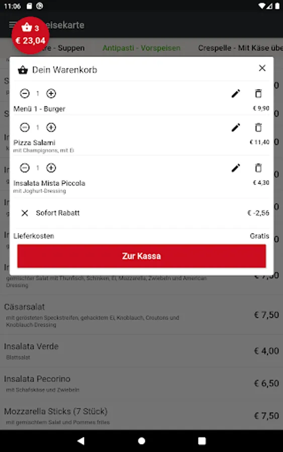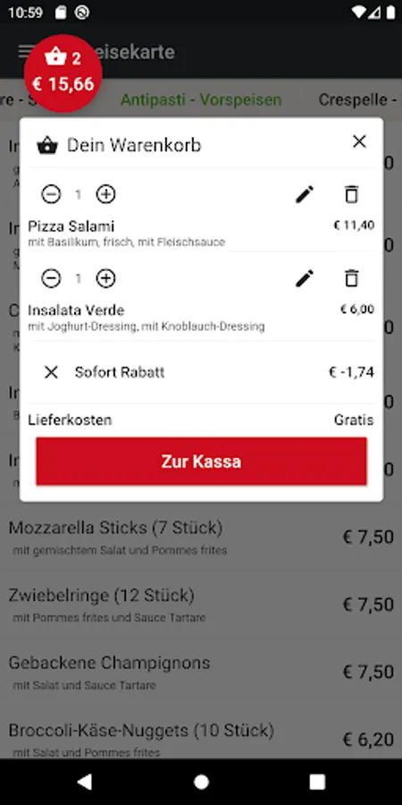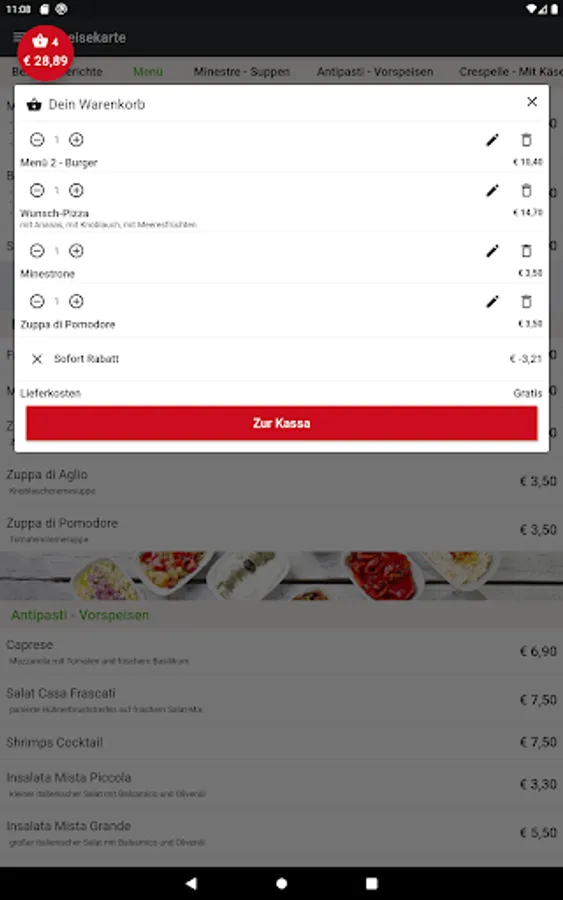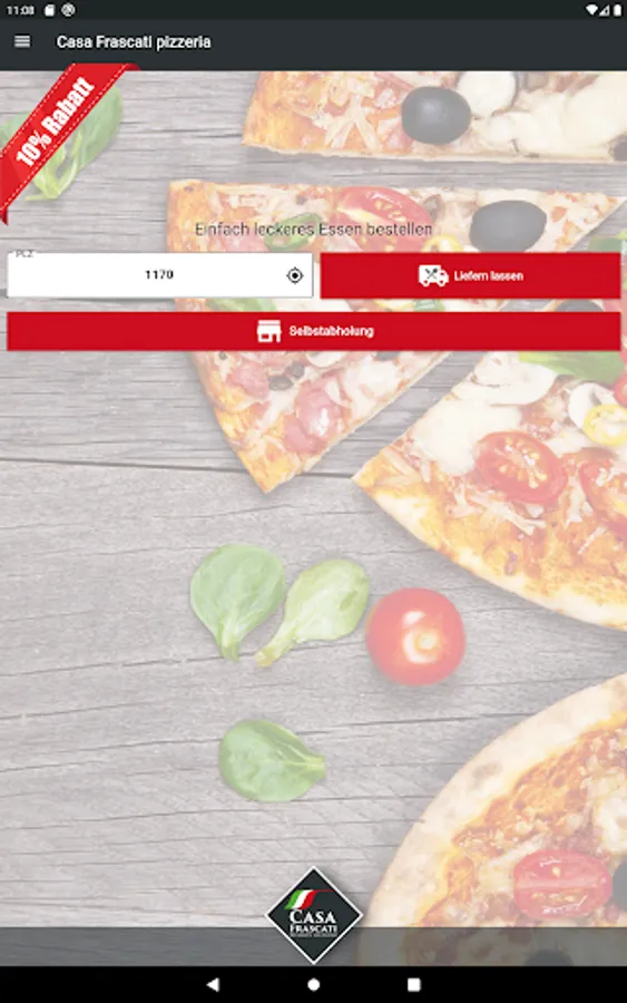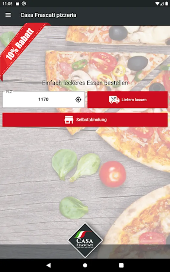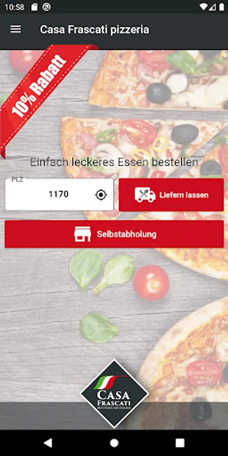 Casa Frascati Pizzeria now also delivers to your home. Order Italian pizza, pasta, salads, drinks and desserts conveniently and easily online. Simply order food online via the web or via app. Choose favorite food, pay easy & safe and food is delivered! Simply order food and have it delivered for free in Vienna! Cash or pay online. Great offers. Excellent service. Fast delivery.