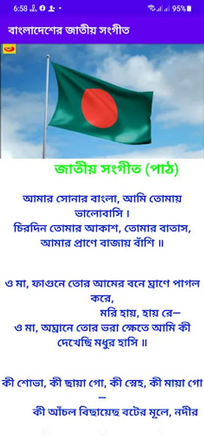 Bangladesh national anthem and country songs are played in this app. Through this app you can enjoy the national anthem of Bangladesh and you don't need any mobile data to use the app.