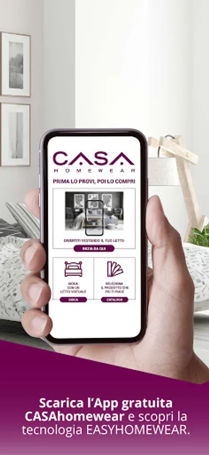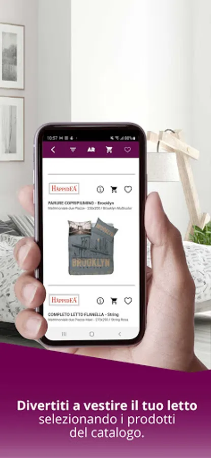 With CASAhomewear you can consult the product catalog, choose what you like most (bed set, duvet cover set, quilt, sheets) and view it in 3D directly on your bed thanks to the augmented reality of EASYHOMEWEAR technology.