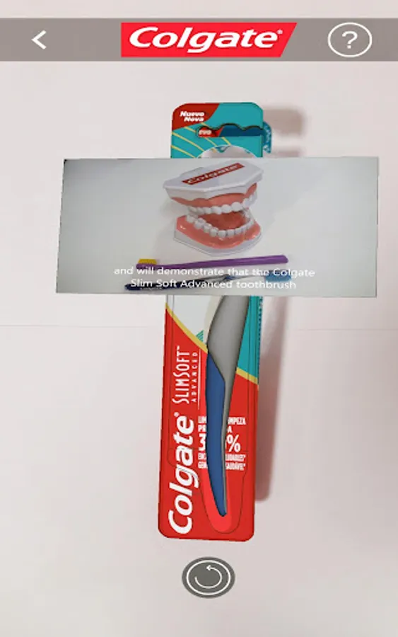 With the Colgate Augmented Reality application, you choose a Colgate product from the Menu, point the camera from your Smartphone to the actual product so you can watch a video about the product.