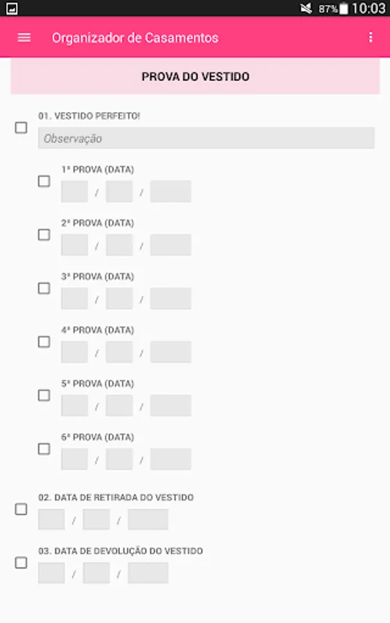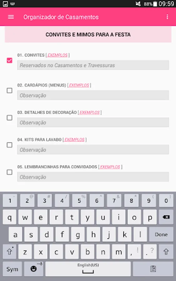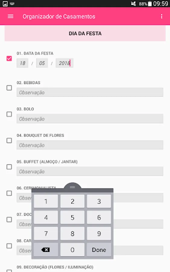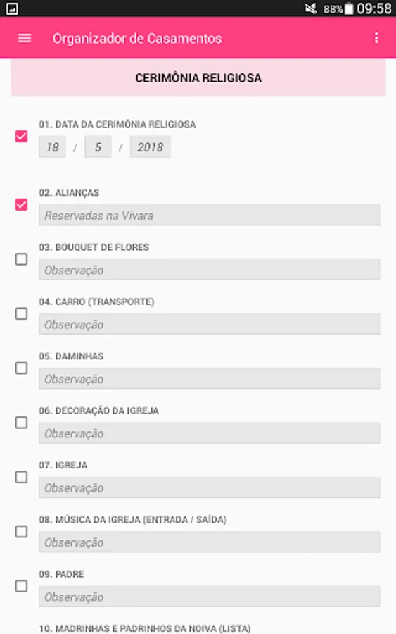 Use the application check list and save the most important information of your wedding to make sure you did not forget anything most important day of your life! .