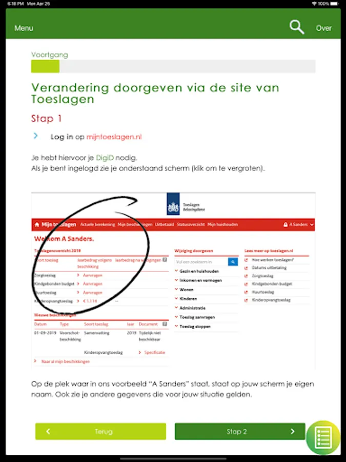 In this app you will find a manual on how to apply for childcare allowance. In the app you will also find a manual on how to pass on a change to Allowances.