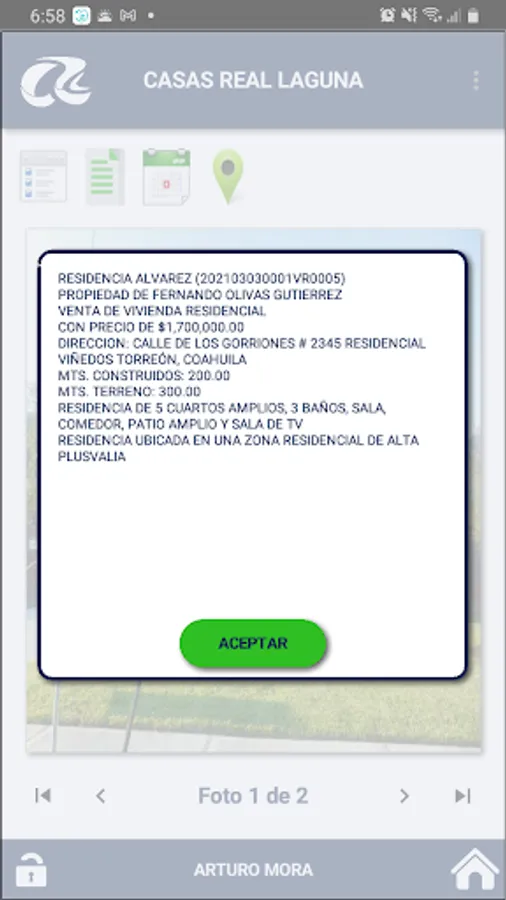 Tool used for the management of real estate services, registration of properties, scheduling appointments for visits,