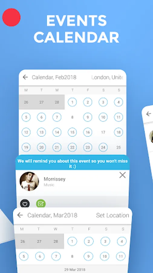 CircleMe generates in real-time a personal magazine for you. It also provides you with a Personal Calendar with events you care for and for which you can set reminders: this way you will never miss on an event you care for. 1M+ Likes and more than 70,000 events available for 6000+ locations globally means CircleMe will help you be what you Like!