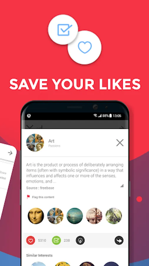 ○ 'Like' all your interests you can find on the platform or add your personal ones.
