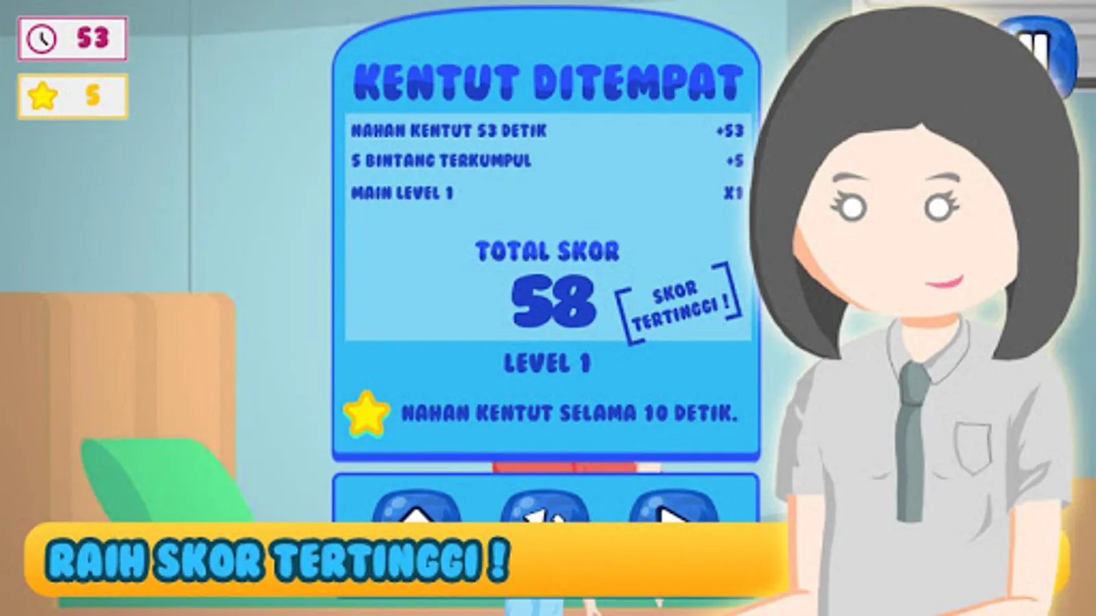 Hold farts for as long as possible to get the highest score and collection of stars so you can score even higher!