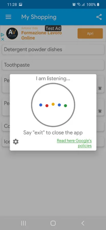 Open the app with "Ok Google" from the main screen and start to interact by talking with the phone saying "Open my shopping".