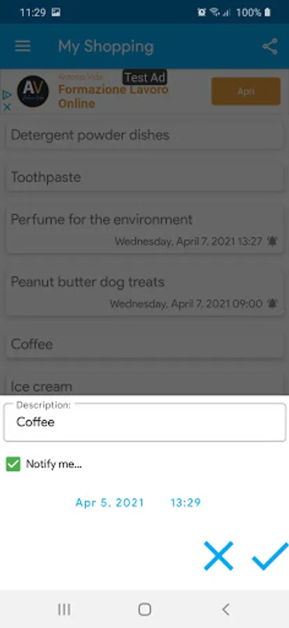 Add items to the list by simply saying what to insert, the app will transcribe what you have said.