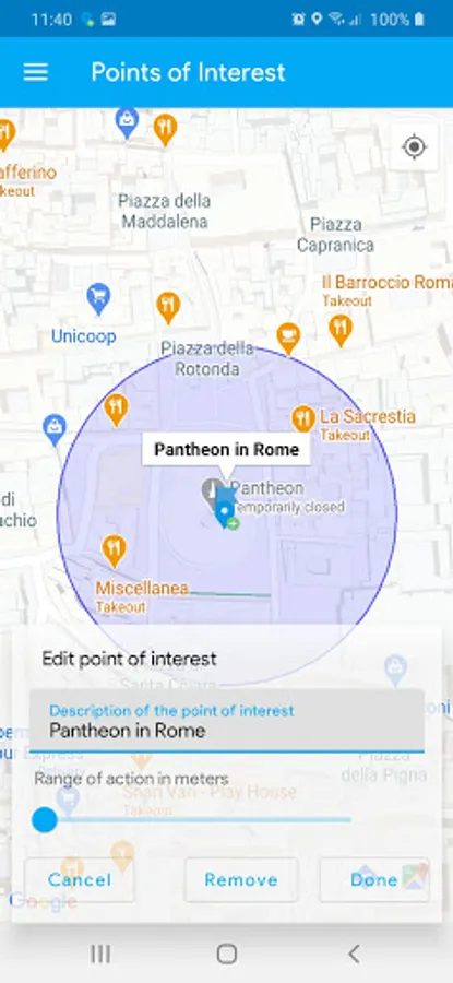 Completely translated in english, with this app you can store all the location in which you are interested and alerted when you reach their proximity.