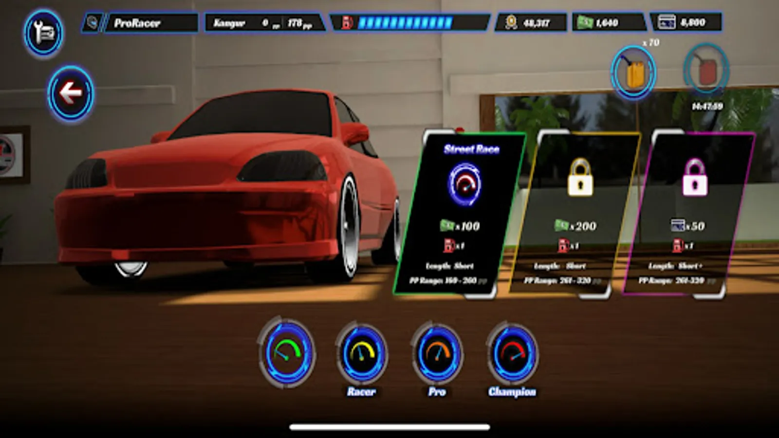 Buy, upgrade and tune your cars to their best to dominate the racing world and be prepared for upcoming events and challenges while you build the best racing garage of all times. Street race is not just about being fast but to show off your tuned ride to others. From bumpers to wings and fenders, all kinds of color, chromaflair and decals you get to choose how to express your racing style.