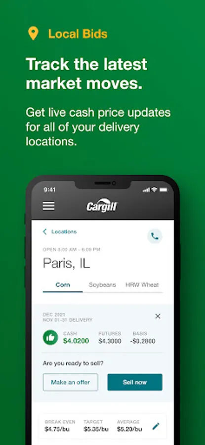 The CargillAg app gives you live cash price updates for your saved delivery locations so you never miss a price change or facility update.