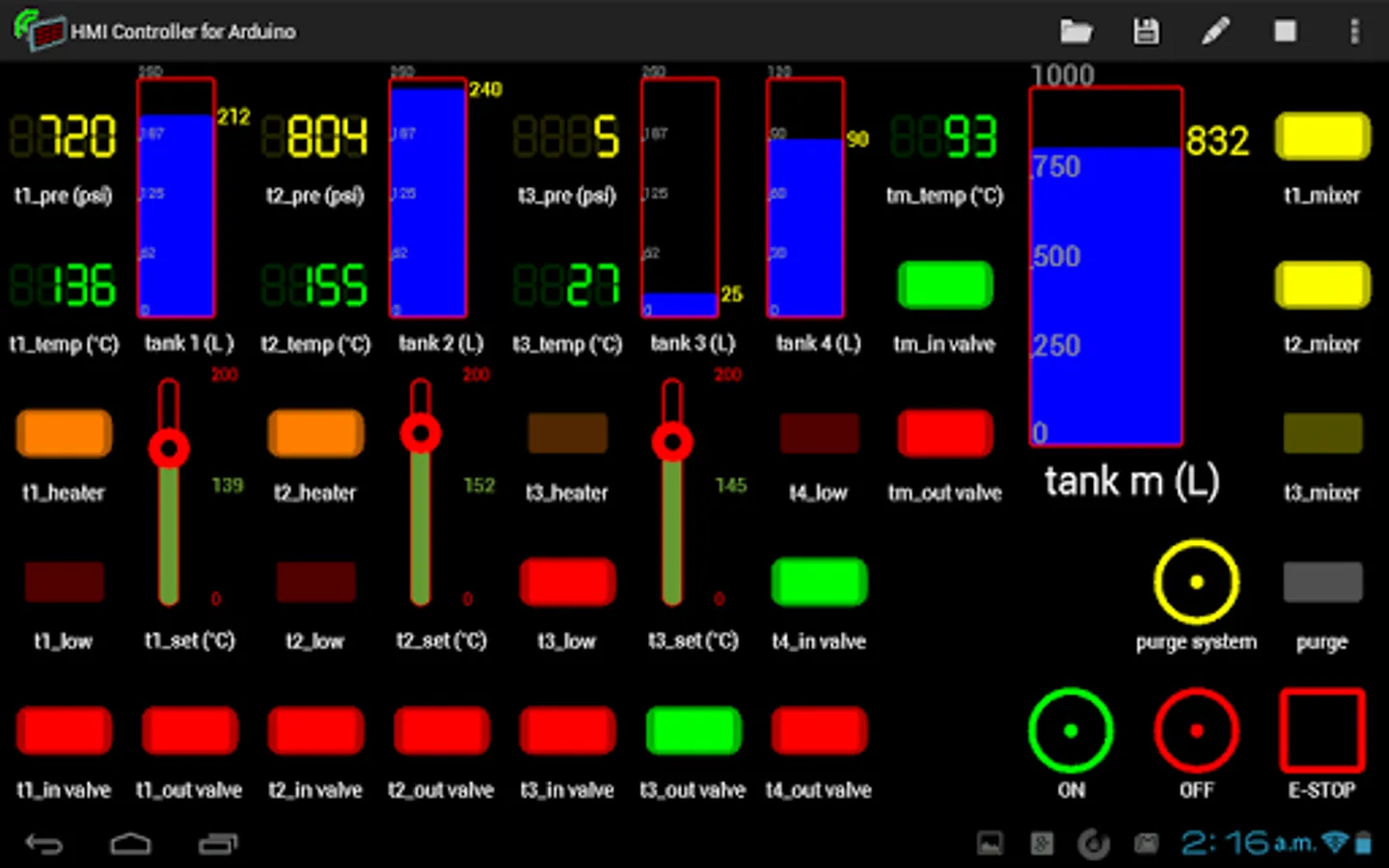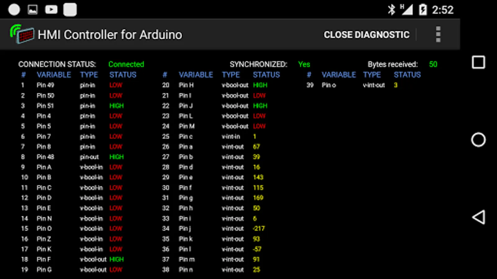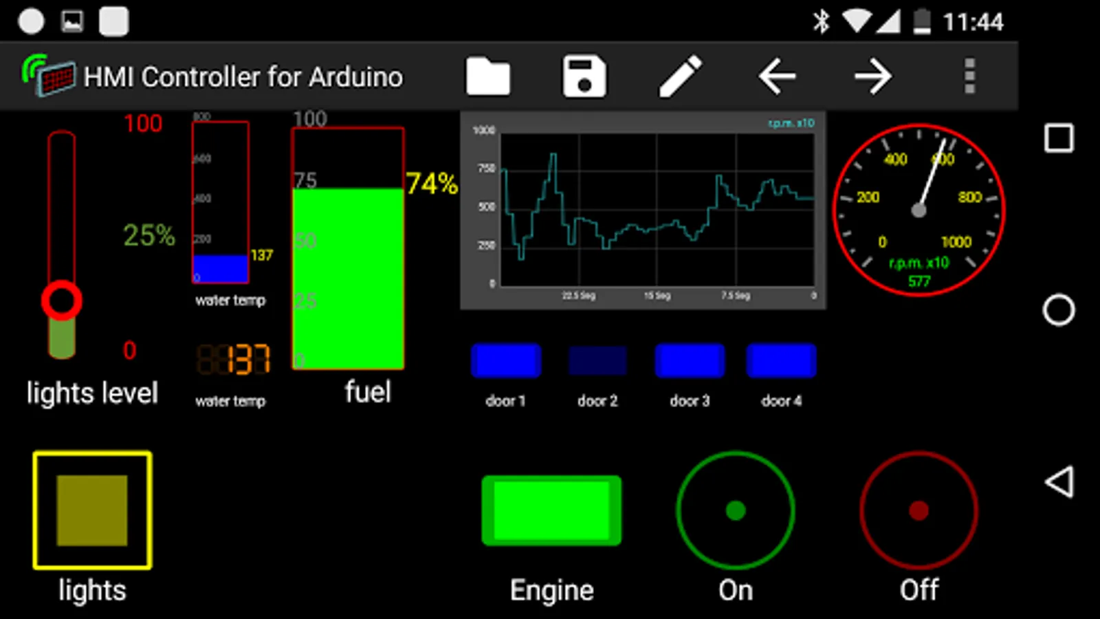 The Hmi Controller for Arduino is an application for the Android OS that allows you to connect your Arduino board (UNO and Mega) with your Android device in an easy way, it can be connected over Bluetooth or LAN (Local Area Network), without the need of understanding anything about Android programming, also without the need of knowing a lot of functions or writing extended code in your Arduino sketch to make the communication. Hmi Controller manages all the control process of the pins and variables declared in your Arduino project.