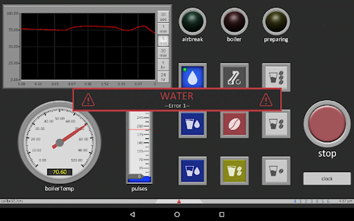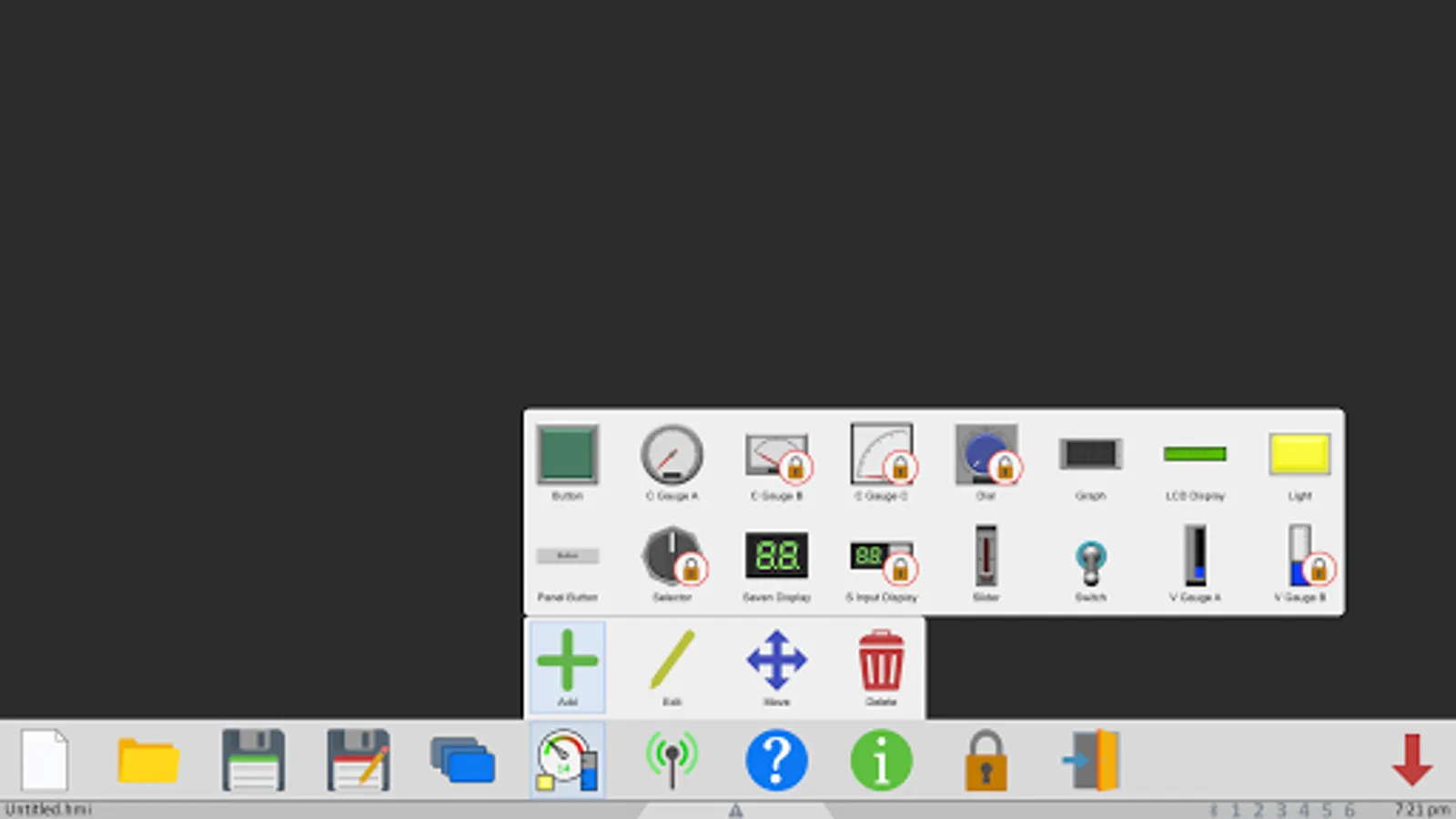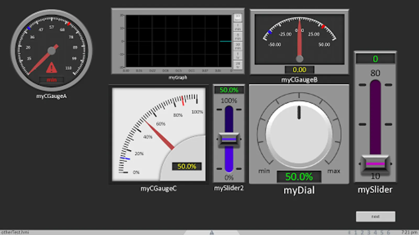 Make your own customizable HMI in the app without the need of a computer, you can select from sixteen different objects (widgets), ten widgets are available from start, the other six widgets require the yellow padlock (in-app purchase).