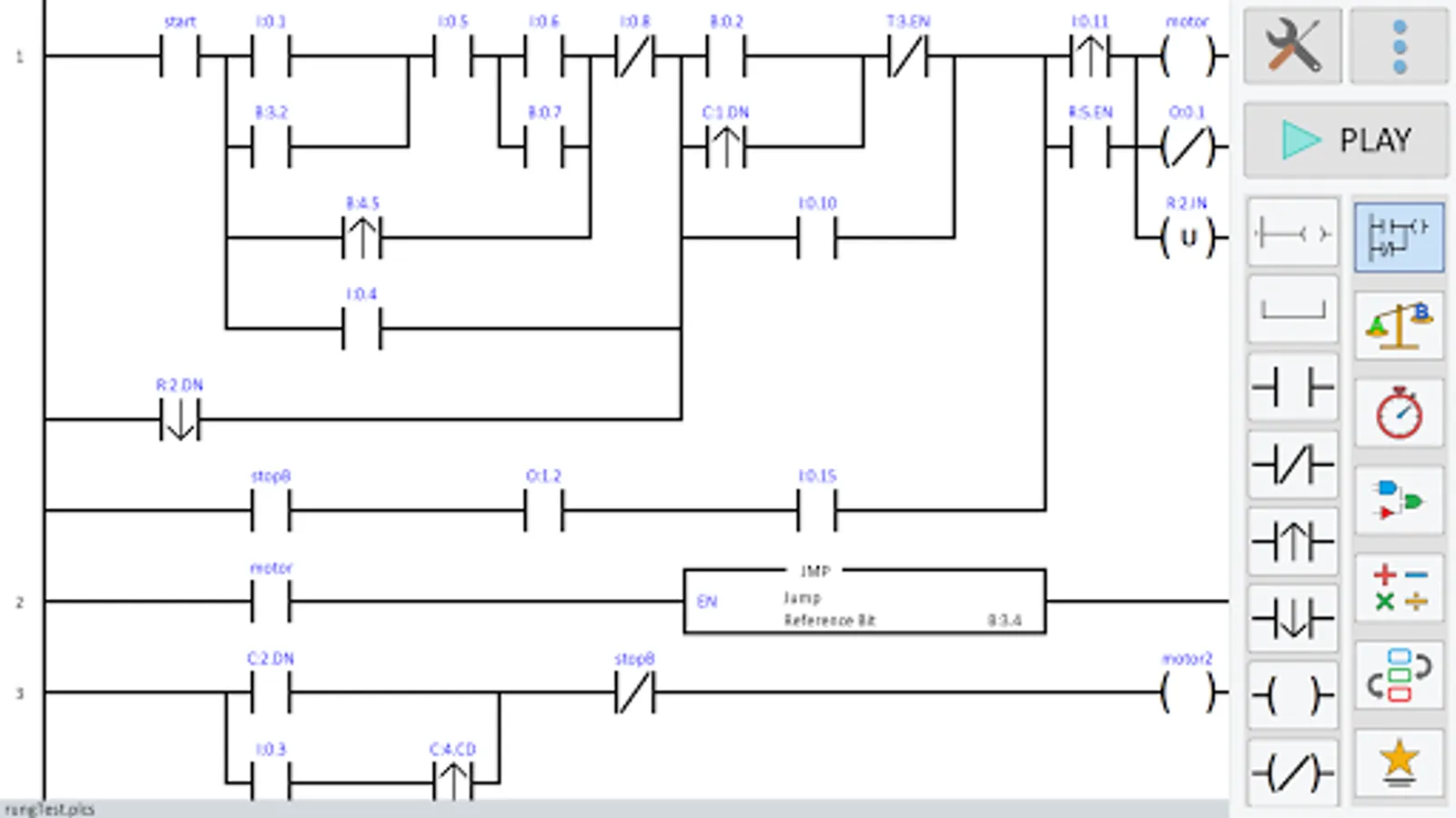 PLC Ladder Simulator 2 is the successor of PLC Ladder Simulator, this version comes with big changes like a better and more friendly user interface UI and user experience UX, better use of sub-rungs, more functions blocks, unlimited save files and the possibility to export them to other devices that run the app, and much more.