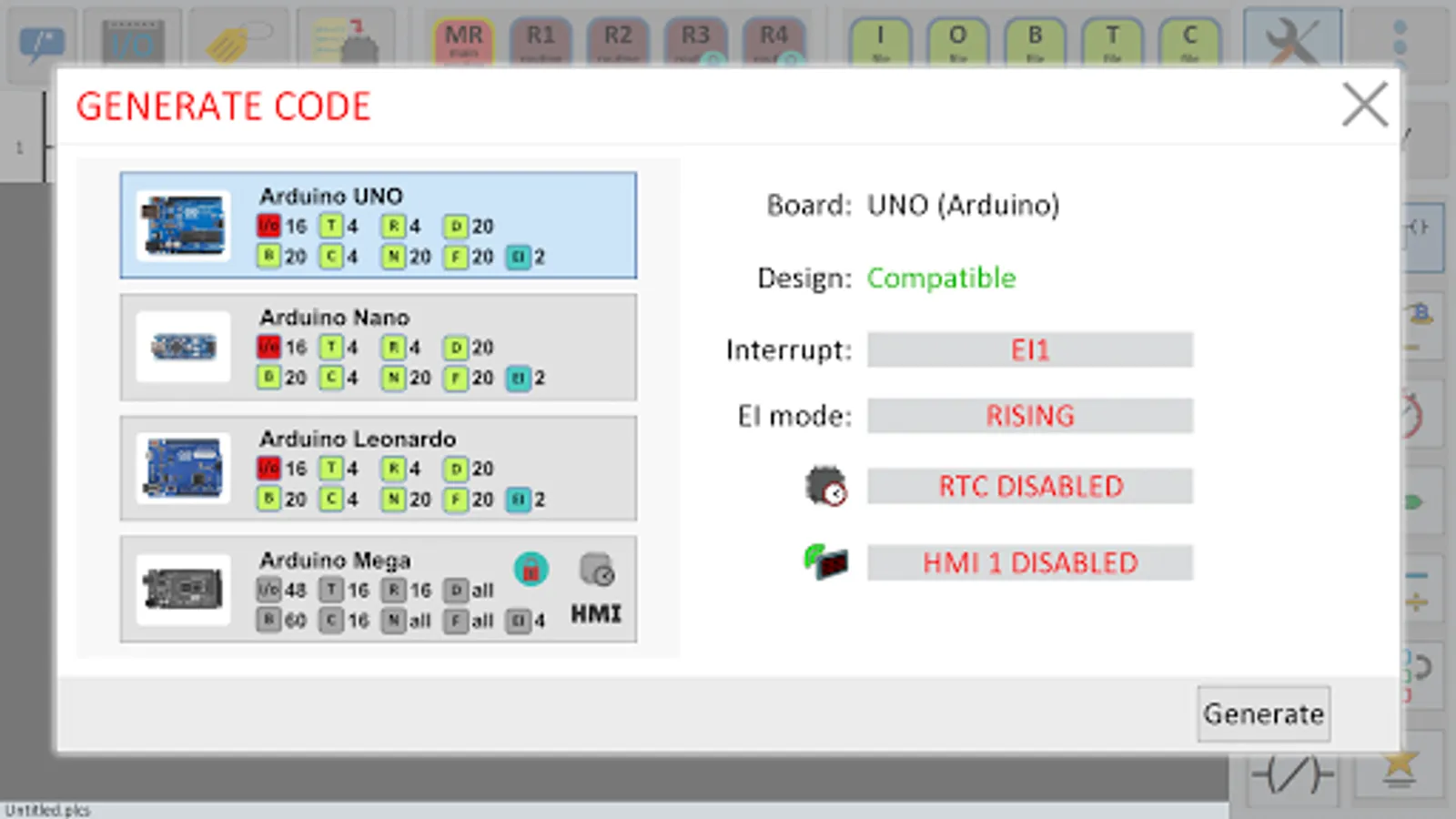 PLC Ladder Simulator 2 allows to auto-generate Arduino code for some Arduino boards from your ladder designs.