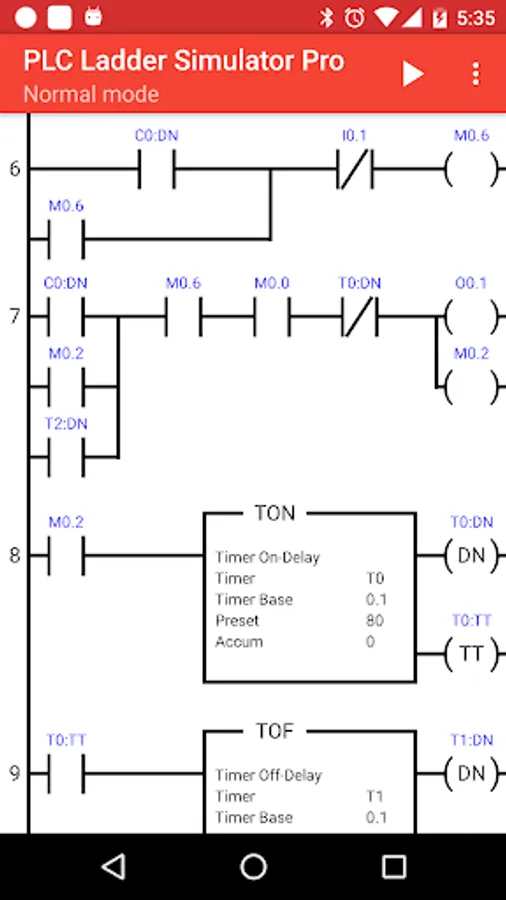 -> PLC Ladder Simulator: https://play.google.com/store/apps/details?id=com.casdata.plcladdersimulator