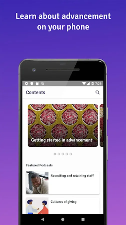 The app covers topics on the following areas of advancement: