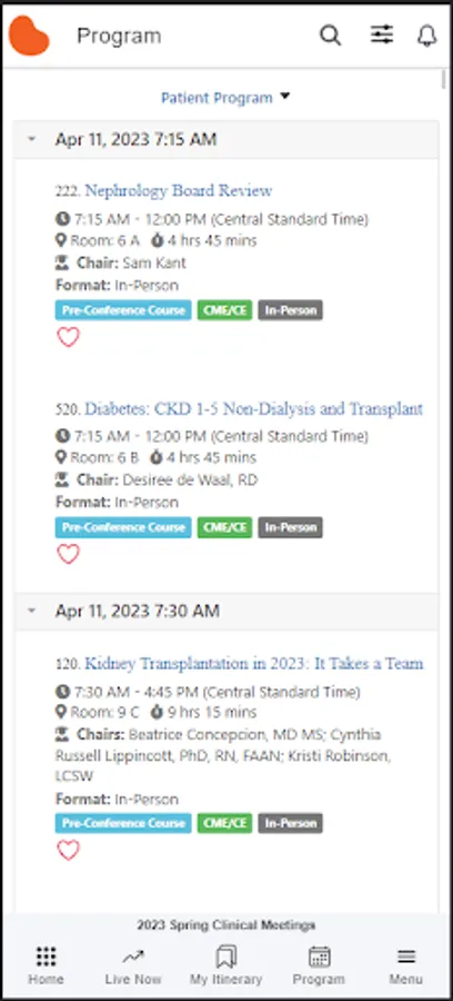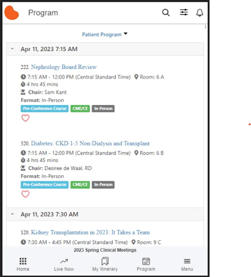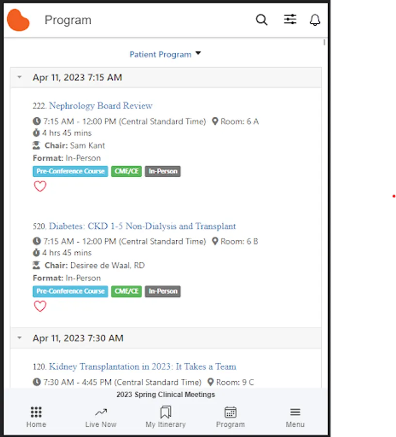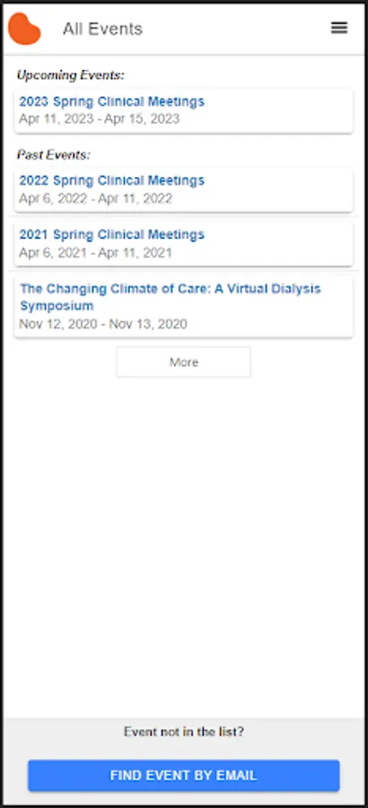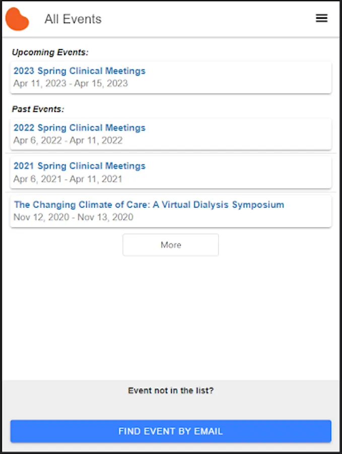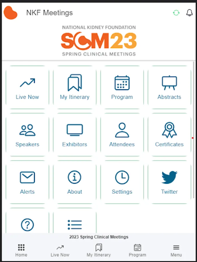 National Kidney Foundation's Android App to manage SCM events. View both past and upcoming events. App features include viewing programs, abstracts, speakers, exhibitors and attendees for selected event. App also allows managing user profile information such as uploading a profile image. App uses push notifications to inform user of important updates.