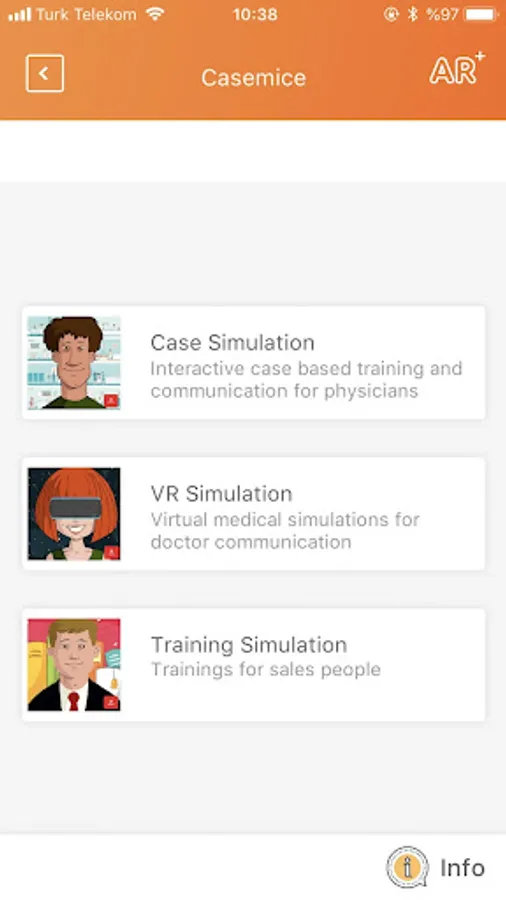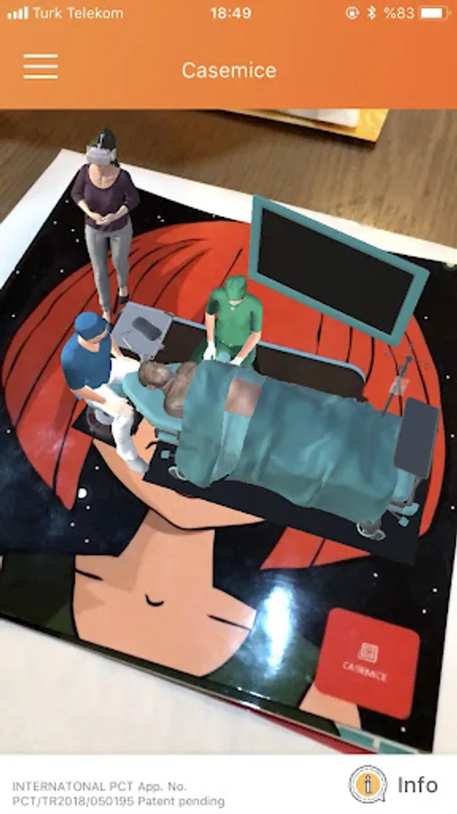 Casemice is a digital agency providing simulation based communicational and promotional tools for pharmaceutical companies and institutions since 2013. We have distinctive products such as AI patient management, VR surgery & VR meetings. You can experience some product demonstrations with AR technology within the app. In order to have a better picture of what we do you can use it with our brochure which is designed for optimum AR implementation. If you don’t have a Casemice brochure, we’ d be glad to send you a copy. But you can still have the product explanations and see them in action within the app. Here is what you can find: