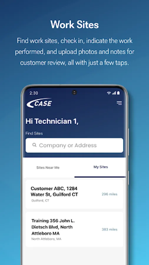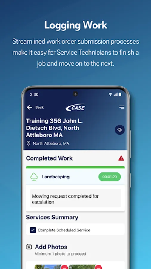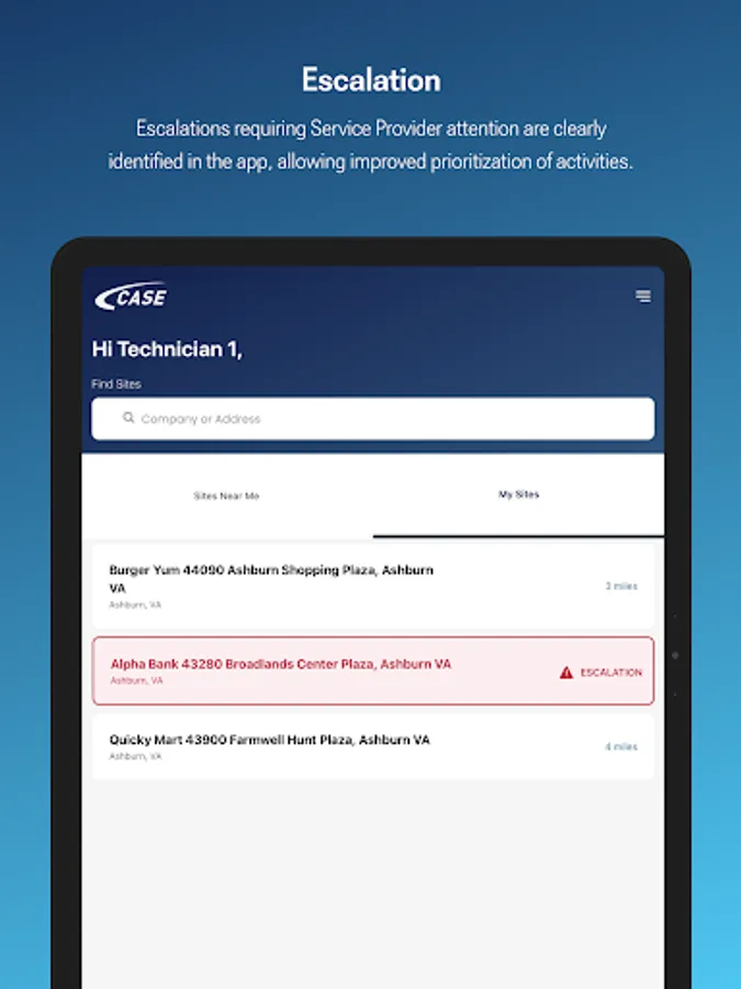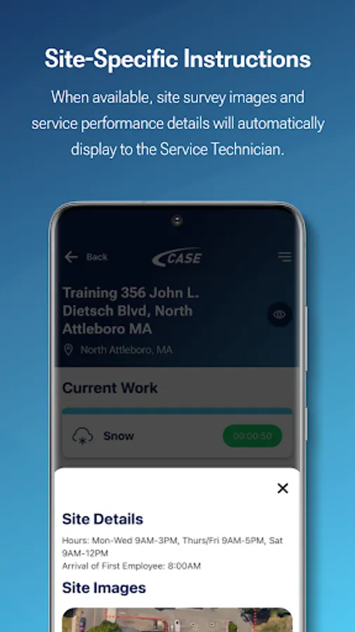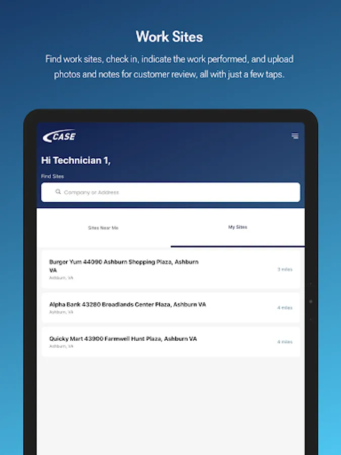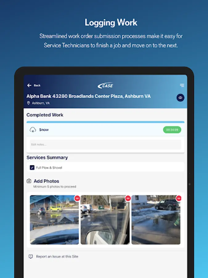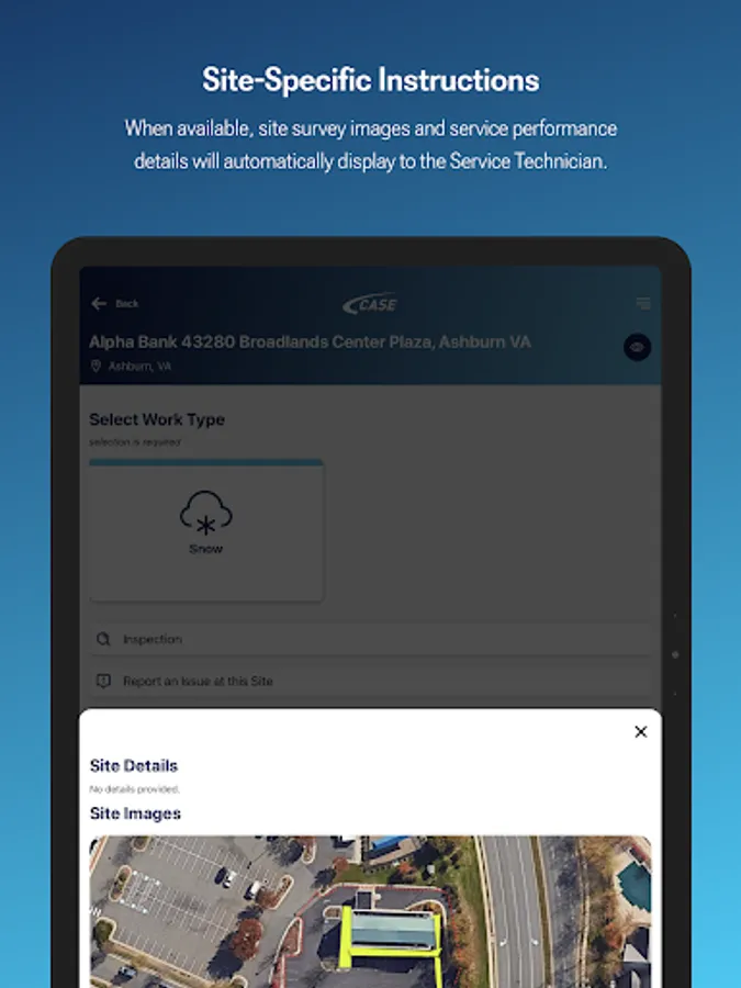 Are you performing services for CASE Facility Management Solutions (CASE FMS)? Use our app to streamline logging your work. The CASE FMS app allows you to quickly select your site, review site details and imagery (when available), and log your work - including photos - with just a few taps.