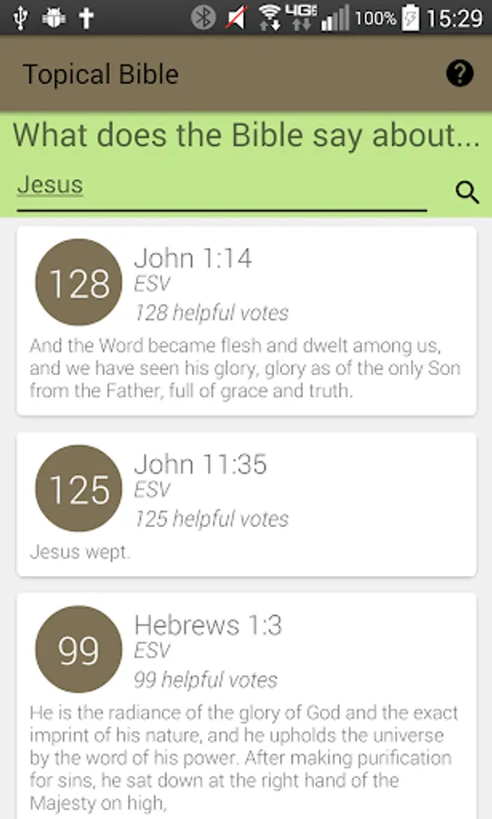 This app is an unofficial client of the topical Bible search from OpenBible.info created by Casey Brooks. It started as part of the app Scripture Now, but has been released as its own standalone application.
